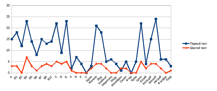 Также у ребёнка имеется очень сильный дефицит Железа, Йода, Цинка, Кальция, Магния, витаминов: А, В1, В2, В5, В6, В7, В9, В12, С, D.